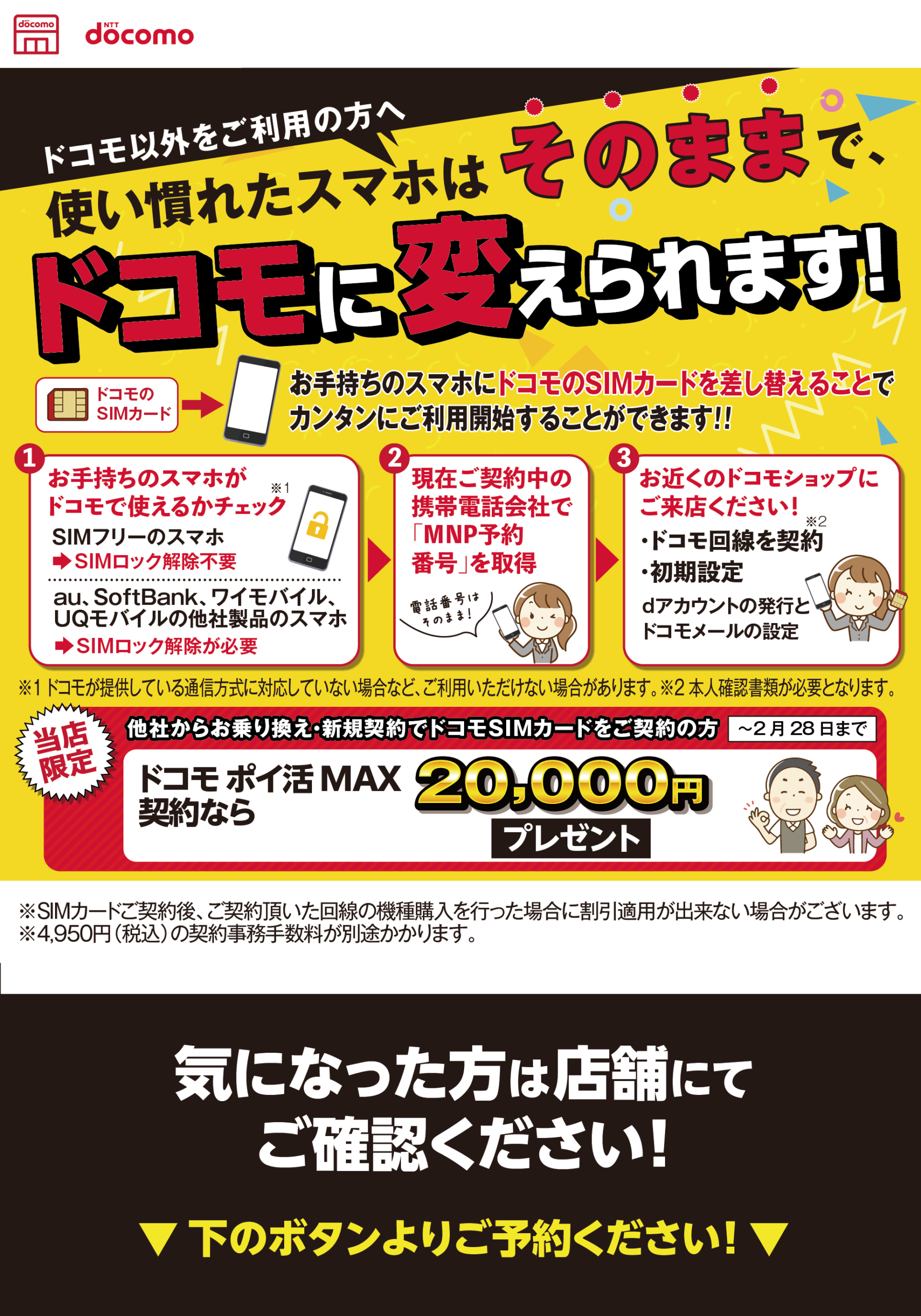 WEBからの来店予約には「dアカウント」が必要になります。 dアカウントが不明な方はお電話でご予約下さい!